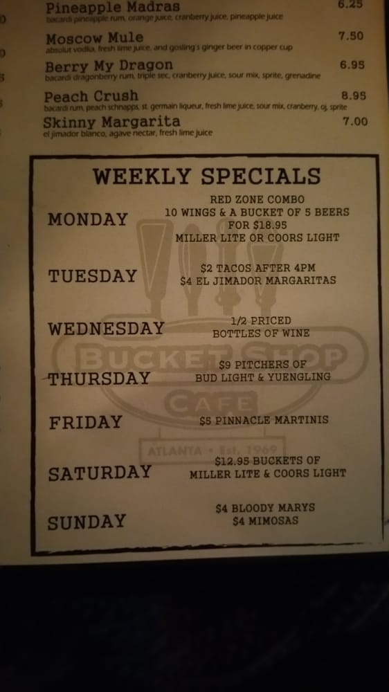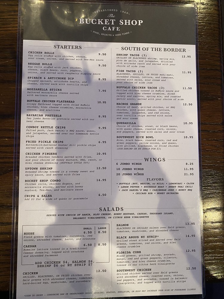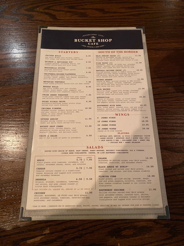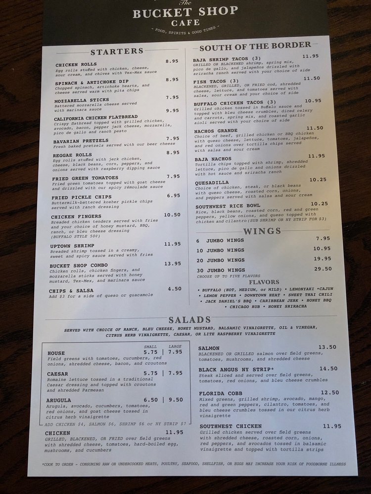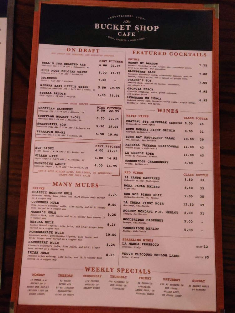 Introducing the Menu at Bucket Shop Cafe, located in Atlanta, GA, is a must-visit for burger lovers, cafe enthusiasts, and cocktail aficionados. This bustling spot offers a wide range of amenities, including takeout, reservations, vegetarian options, and even cryptocurrency payments. The extensive menu features classic pub fare with a Southern twist, such as loaded nachos, fish and chips, and mouth-watering burgers. Customers rave about the consistency and deliciousness of the food, with standout dishes like jerk wings, chicken rolls, and the delectable burgers. The casual atmosphere, friendly staff, and excellent prices make Bucket Shop Cafe a perfect spot for lunch, dinner, or late-night bites with friends and family. Whether you're looking for a relaxing meal, a lively bar scene, or a place to catch a game, Bucket Shop Cafe has something for everyone.